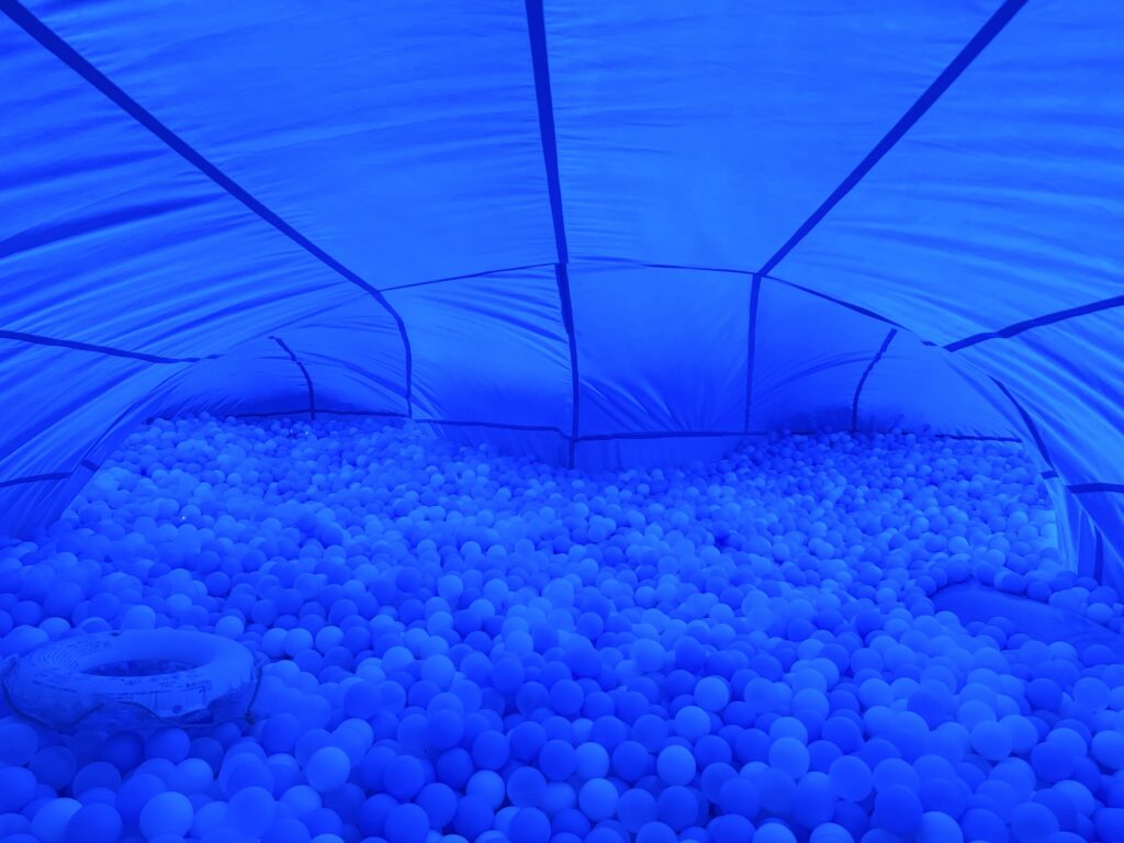 中には滑り台やボールを飛ばせる遊具、風でボールを動かす遊具、トランポリンなどなど、40分間はあっという間に過ぎていきます。