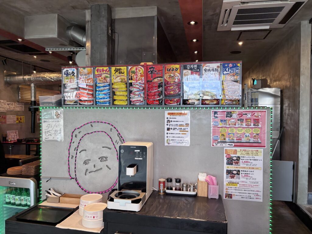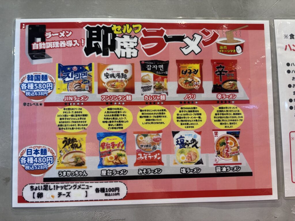 ラーメン定食がとてもユニークで、市販の即席ラーメンを全自動ラーメン作りの機械で作るんです。