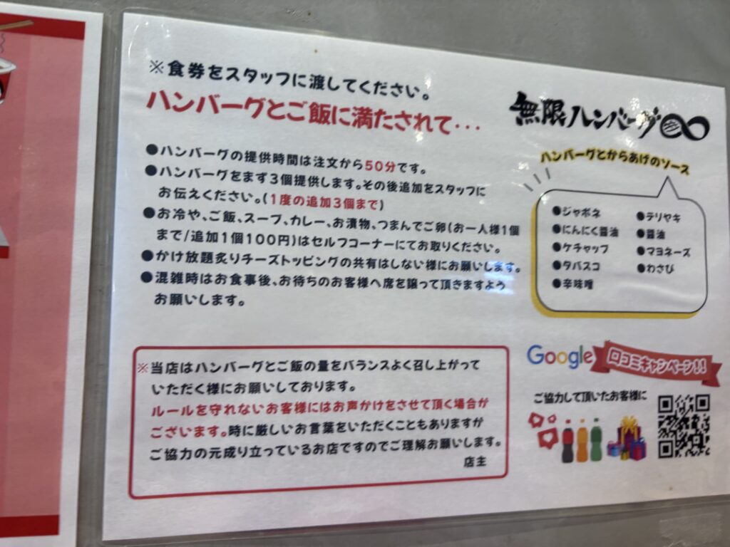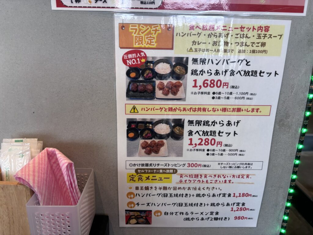 糸島の無限ハンバーグと唐揚げ食べ放題店のメニュー